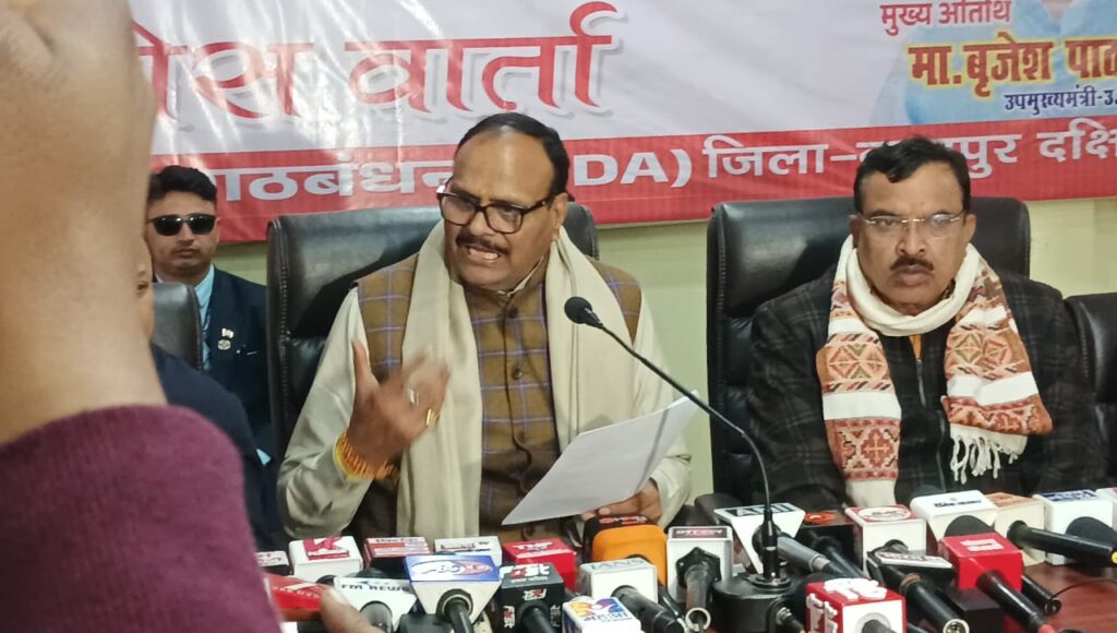 उत्तर प्रदेश में सरकारी अस्पतालों में वेंटिलेटर की किल्लत के कारण प्राइवेट अस्पतालों की चल रही लूट और मनमानी का मामला हो या उत्तर प्रदेश सरकार में मंत्रिमंडल फेरबदल में अंदरूनी रसाकसी की सुगबुगाहट की बात प्रदेश के उप मुख्यमंत्री ब्रजेश पाठक ने केंद्र सरकार की वीबी-जी राम जी के इतर किसी भी सवाल का जवाब देने से मना कर दिया। शहर के दक्षिण जिले में स्थित भाजपा मुख्यालय में एक मीडिया वार्ता के दौरान ब्रजेश पाठक UPA सरकार के दौरान लाई गई मनरेगा योजना में व्याप्त भ्रष्टाचार साधते दिखे। यही नहीं उन्होंने सपा-कांग्रेस के केंद्र सरकार की वीबी-जी राम जी के विरोध को मजदूरों और किसानों का अपमान बताया। आपको बतादें की कांग्रेस और इंडिया गठबंधन मोदी सरकार के मनरेगा के नाम बदलने को लगातार मुद्दा बना रहे हैं, जिसके बचाव में केंद्र और भाजपा शासित प्रदेश सरकारों के मंत्री लगभग प्रत्येक जिलों में बैठक और प्रेसवार्ता के माध्यम से खुद के किसानों और मजदूरों का हितैसी होने को दम भर रहे हैं।