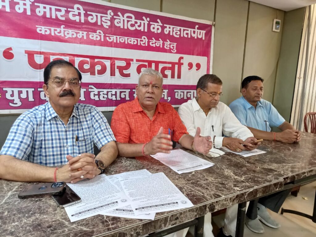 कानपुर। युग दधीचि देहदान संस्थान के बैनर तले अजन्मी बेटियों के महा तर्पण हेतु महिलायें गंगा तट पर एकत होंगी, यह अनूठा आयोजन नगर के सरसैया घाट पर 14 सितम्बर रविवार को प्रातः दस बजे आयोजित है।