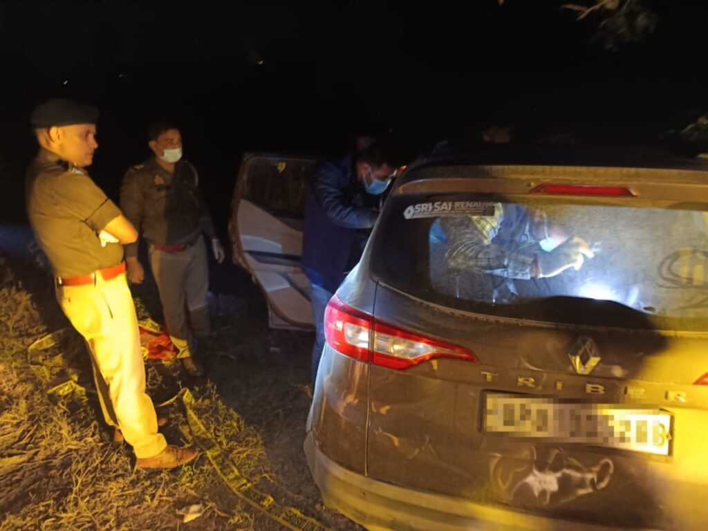 पुलिस अधीक्षक यातायात प्रवीण कुमार यादव ने बताया कि खैर क्षेत्र में सोमनाथ रोड पर स्थित गांव उदयपुर के पास सड़क किनारे खेतों के पास पेड़ के नीचे एक लावारिस कर खड़ी हुई थी ग्रामीणों ने जब कार के शीशे के पास जाकर देखा कार के अंदर खून से लथपथ एक युवक का शव ड्राइवर के बगल वाली सीट पर तथा दूसरे युवक का शव उसके पीछे वाली सीट पर पड़ा हुआ था। कार के शीशें प्लास्टिक के बोरी के टुकङों से ढके हुए थे । ग्रामीणों ने तुरंत इसकी सूचना 500 मीटर की दूरी पर स्थित वरका पुलिस चौकी एवं थाना खर पुलिस को दी गई कार के अंदर दो शव पड़े होने की सूचना मिलते ही आनन -फानन में वरिष्ठ पुलिस अधीक्षक नीरज कुमार जादौन पुलिस अधीक्षक यातायातए प्रभारी पुलिस अधीक्षक ग्रामीण प्रवीण कुमार यादव सीओ खैर इंस्पेक्टर थाना खैर बरका पुलिस चौकी इंचार्ज पुलिस फोर्स के साथ मौके पर पहुंचे थे।