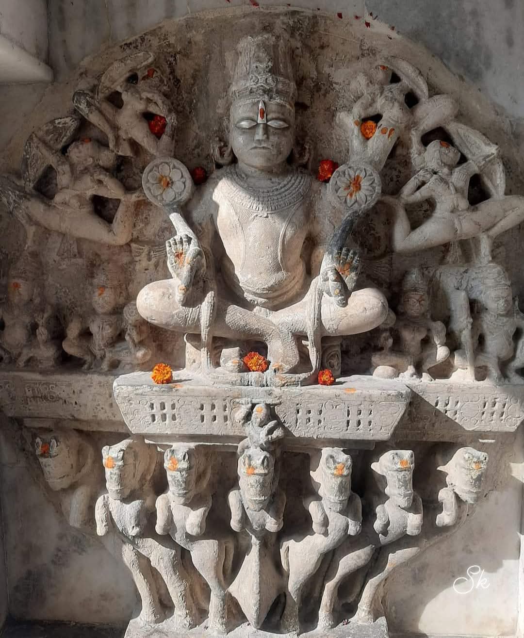 मेवाड़ के सबसे ऊंचे जरगा पहाड़ के पश्चिम में भगवान पद्मनाभ ( विष्णु) का जो मंदिर है, उसमें सूर्य की दो प्रतिमाएं बहुत अलग रूप में रही है : सात अश्व और एक चक्र वाले रथ पर विराजित अपने मंडल सहित भगवान भुवन भास्कर। इतनी सुंदर और सुघड़ कि देखते ही मोहित करें।