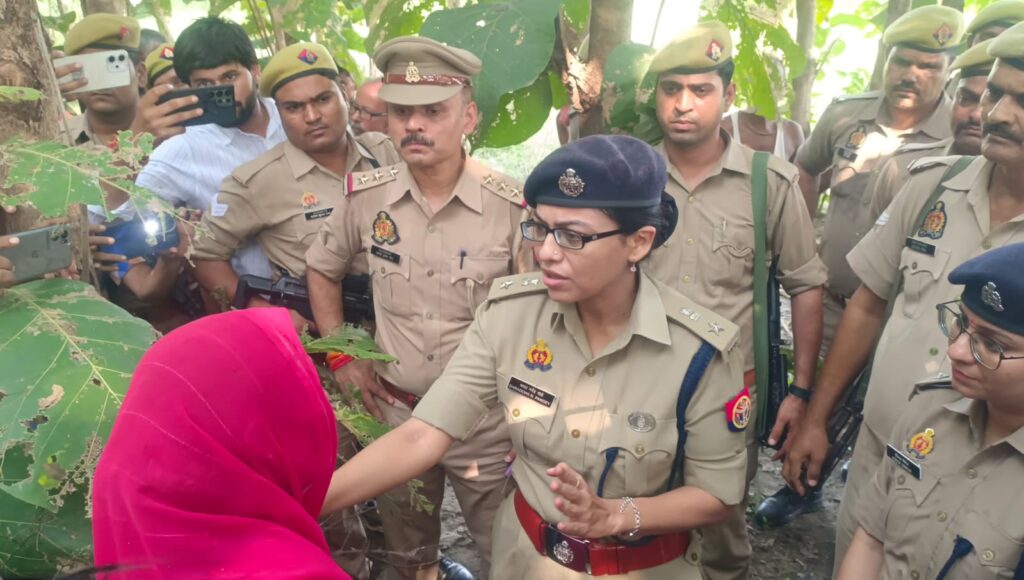 गुरुवार को घटनास्थल पर किशोरी के परिजनों से संवाद करतीं पुलिस अधीक्षक श्रद्धा नरेंद्र पांडेय।