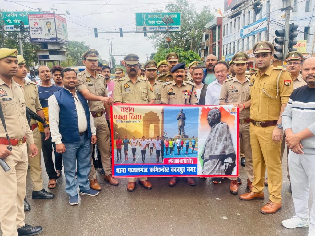 लौह पुरुष सरदार वल्लभभाई पटेल जी की 150वीं जयंती के उपलक्ष्य में मनाए जा रहे ‘राष्ट्रीय एकता दिवस’ के अवसर पर समाज में एकता, अखंडता एवं सद्भावना का संदेश प्रसारित करते हुए उत्तर प्रदेश पुलिस द्वारा “रन फॉर यूनिटी 2025” का आयोजन किया गया। इस अवसर पर पुलिस उपायुक्त (सेंट्रल) श्री श्रवण कुमार सिंह महोदय ने थाना फजलगंज क्षेत्र के दर्शनपुरवा से फजलगंज चौराहे तक दौड़कर कार्यक्रम की शुरुआत की और उपस्थित नागरिकों को राष्ट्रीय एकता एवं साम्प्रदायिक सौहार्द का संदेश दिया।