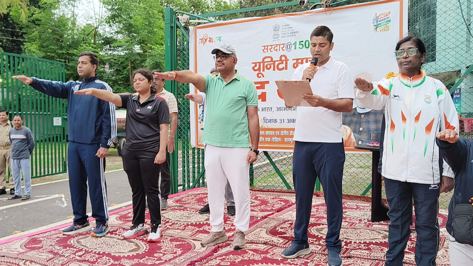 राष्ट्रीय एकता दिवस के अवसर पर कानपुर के ऐतिहासिक ग्रीन पार्क स्टेडियम में आयोजित रन फॉर युनिटी कार्यक्रम का शुभारंभ करते हुए जिलाधिकारी श्री जितेन्द्र प्रताप सिंह ने उपस्थित लोगों को संबोधित करते हुए कहा कि आज का दिन राष्ट्रपुरुष सरदार वल्लभभाई पटेल जी की 150वीं जयंती के रूप में मनाया जा रहा है। सरदार पटेल जी ने स्वतंत्रता के उपरांत देश की साढ़े पाँच सौ से अधिक रियासतों को एक सूत्र में पिरोकर भारत के एकीकरण का ऐतिहासिक कार्य किया। आज का रन फार युनिटी कार्यक्रम उन्हीं के राष्ट्र निर्माण के अमूल्य योगदान को नमन करने का प्रतीक है।